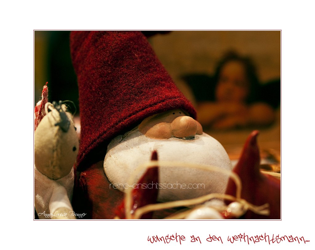 3. DER Weihnachtsmann ist total knuffig. Von dem würd ich mich gern beschenken lassen. Das Christkind kam noch nie zu mir. So was gab es „im Osten“ nicht. LG Susan